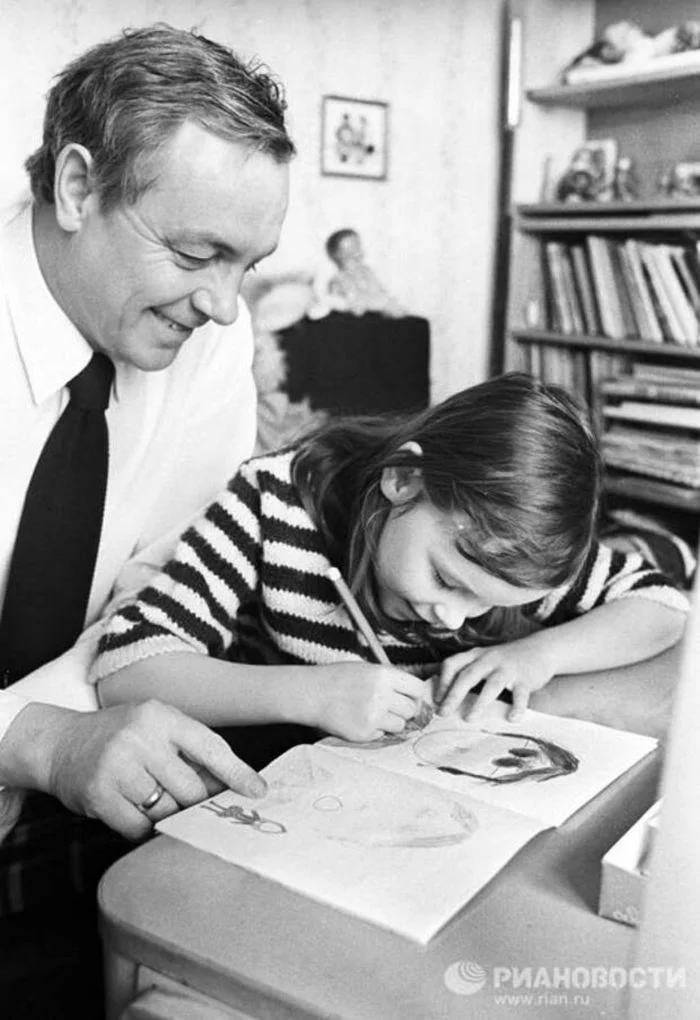 32. Кирилл Лавров с дочкой Наташей у себя дома, 1973 год