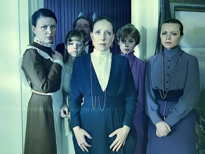 4. Татьяна Кравченко, Яна Поплавская, Николай Скоробогатов, Инна Чурикова, Ольга Машная, Валентина Теличкина в фильме «Васса», 1983 год