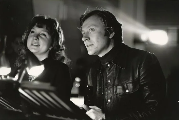 35. Андрей Миронов и Наталья Гурзо на озвучивании фильма «Приключения итальянцев в России»