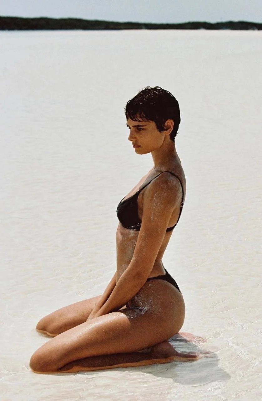 На одном из снимков 28-летняя Тейлор Хилл позирует в черном мини-бикини с вырезом на груди, которое акцентирует внимание на ее загаре.