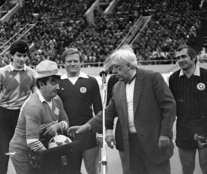 15. Георгий Вицин, Юрий Никулин, Ринат Дасаев на матче «Спартак-Динамо» в Москве, 1987 год
