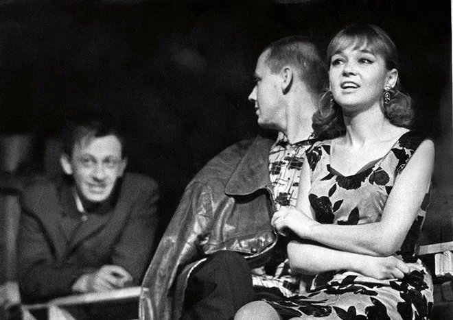 34. Евгений Евстигнеев, Олег Табаков и Людмила Гурченко в спектакле «В день свадьбы» в театре «Современник», 1963 год
