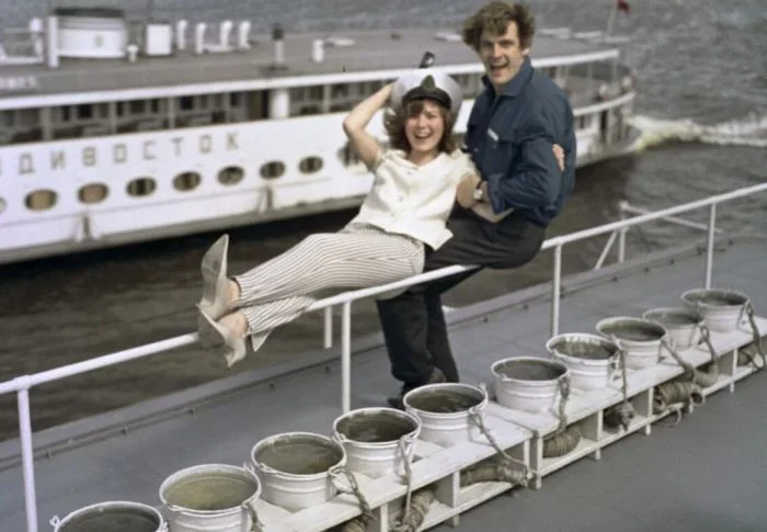 26. Владимир Высоцкий и Ия Саввина в перерыве съёмок фильма режиссёра Е.Карелова «Служили два товарища».