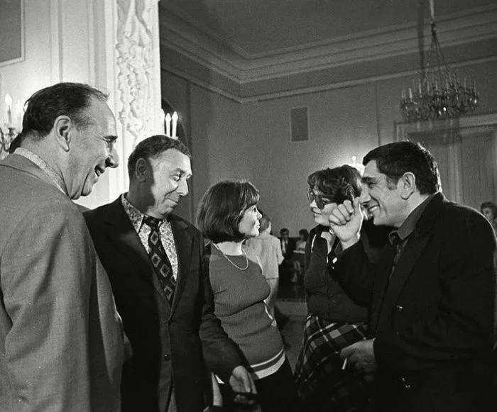 16. Ростислав Плятт, Анатолий Папанов и Армен Джигарханян на ХIII съезде Всероссийского театрального общества, 1975 год.