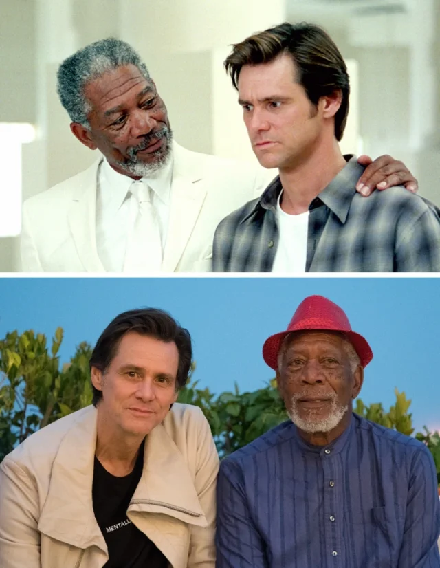Брюс и сам Всемогущий в «Брюсе Всемогущем» vs Джим Керри и Морган Фримен спустя 18 лет