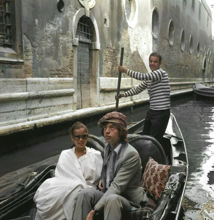 Мик Джаггер на прогулке в Венеции. Италия, 70-е годы.