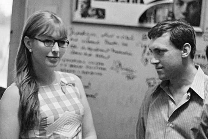 7. Марина Влади и Владимир Высоцкий в день празднования 10-летнего юбилея Театра на Таганке. Москва. 1974 г