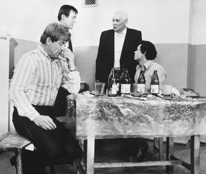 23. Михаил Кокшенов, Геннадий Гарбук, Всеволод Санаев и Николай Караченцов в фильме «Белые Росы», 1983 год.