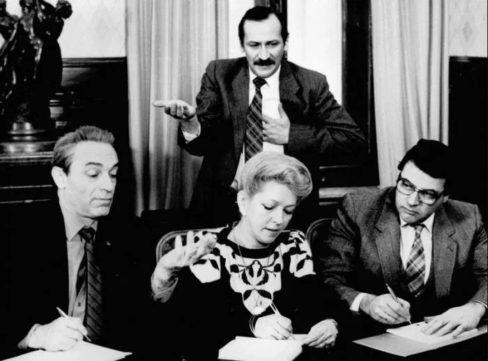 25. Валентин Гафт, Ольга Волкова, Леонид Филатов и Александр Ширвиндт на съемках художественного фильма «Забытая мелодия для флейты»