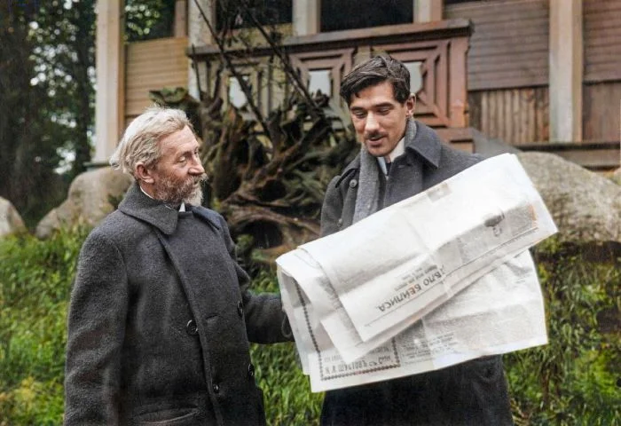 Илья Репин и Корней Чуковский в Пенатах, 1913 год. Два гения своего времени: великий художник и прославленный писатель, публицист и переводчик.