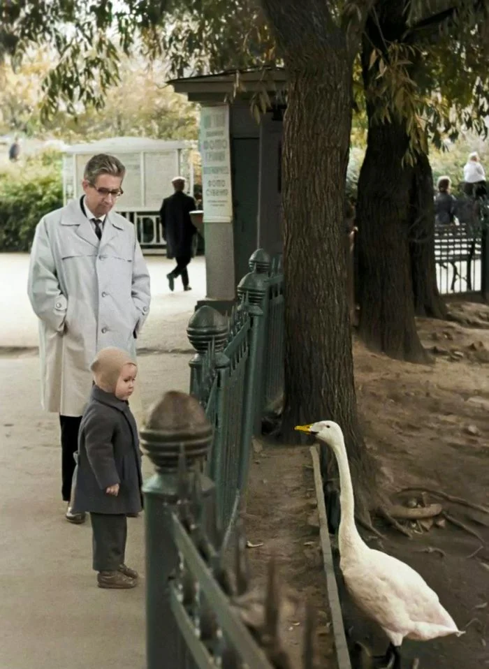Космонавт Константин Феоктистов с сыном Андреем в Московском зоопарке, 1960-е. Первый беспартийный космонавт, инженер и разработчик советских космических кораблей.