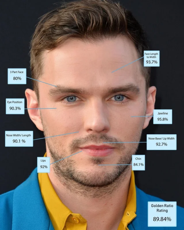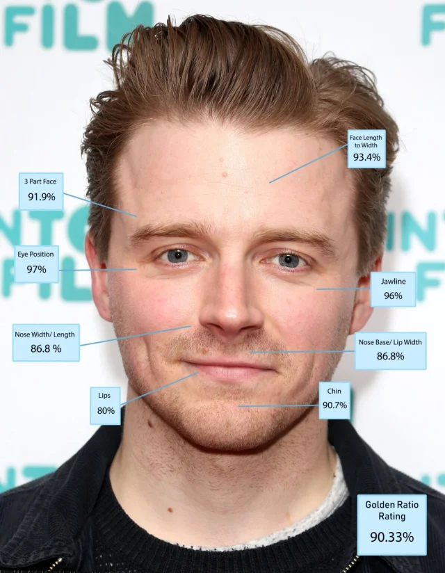 А вот у кого скулы на семь десятых идеальнее! 34-летний британский актёр также близок к идеалу по соотношению длины лица к ширине.