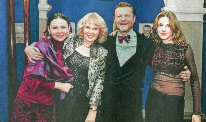 22. После премьеры фильма "А зори здесь тихие...". Ольга Остроумова, Екатерина Маркова, Андрей Мартынов и Ирина Шевчук на встрече со зрителями.