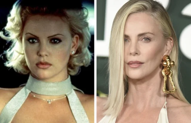 Шарлиз Терон в фильме "Два дня в долине" в 1996 году и в 2024