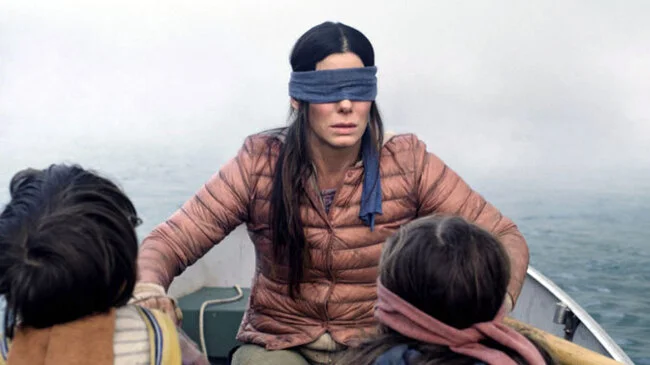 В этом же году вышел хоррор "Птичий короб", основанный на одноименной книге Джоша Малермана. Перед зрителями предстал сюжет в духе постапокалипсиса, в котором центральная героиня Мэлори в исполнении Буллок вместе с двумя детьми и клеткой с птицами пытается вырваться из локации, захваченной страшными существами. Персонажи совершают все действия с завязанными глазами — ведь любой, увидевший ужасающее нечто, тут же убивает себя.