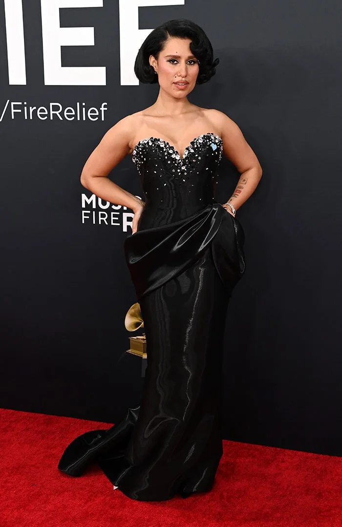 Певица умеет удивлять. В этот раз она вышла на красную дорожку в готическом чёрном платье от дизайнера Сэмюэля Льюиса. Сложный дизайн наряда состоял из высокого воротника, пышных рукавов и кожаного лифа со шнуровкой, объёмной юбки и длинного шлейфа.