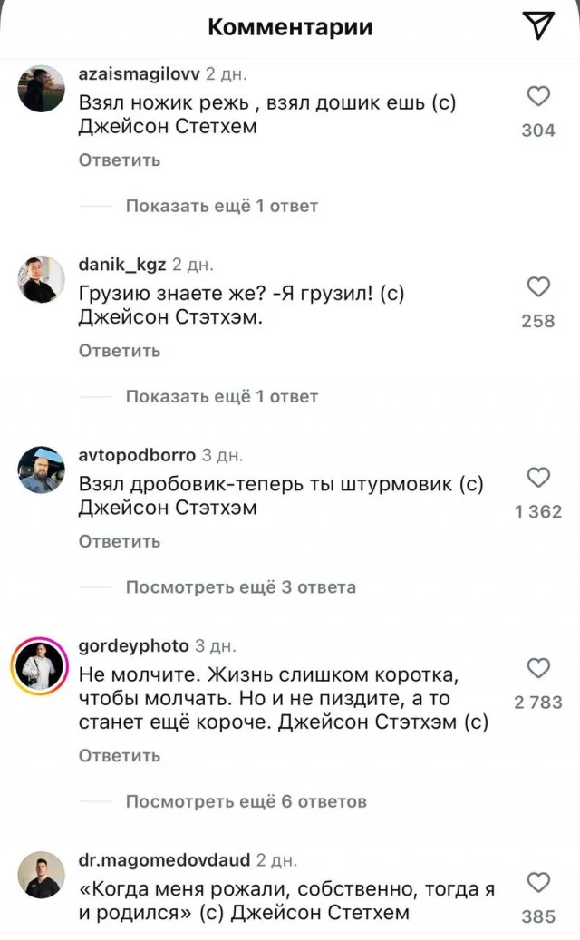 Под новым постом Стейтема – всё как всегда. Интернет не меняется