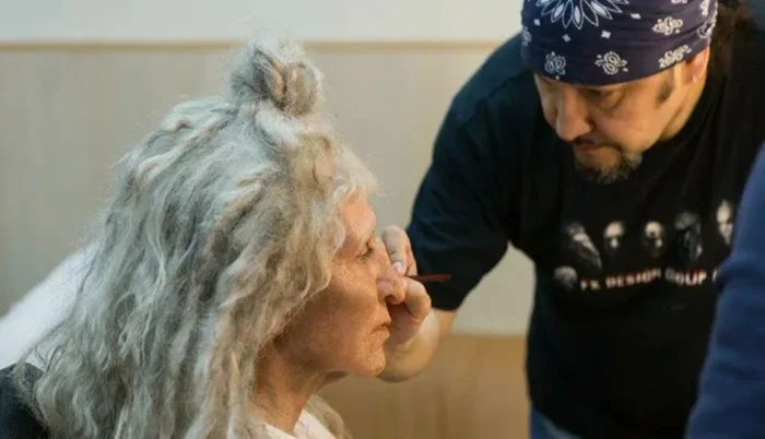 Для создания грима с лица актера был сделан слепок, после чего с помощью него формировались накладки на лицо. Единственное, что не подверглось наложение накладок - это лоб, нос и губы, дабы сохранилась естественная мимика актера.