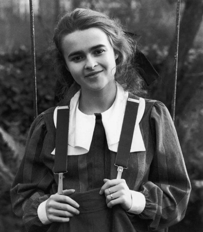 4. 17-летняя Хелена Бонэм Картер в свободном комбинезоне на качелях, 1984