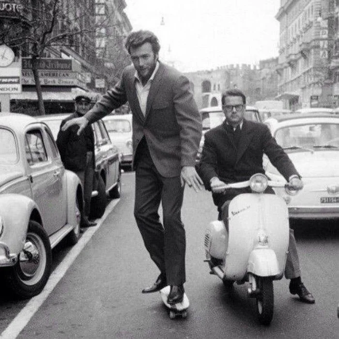 18. Клинт Иствуд катается на скейтборде в Риме, 1964