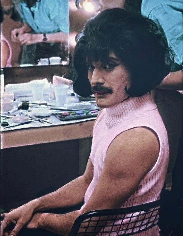 Фредди создал герб коллектива с буквой Q в центре и зодиакальными знаками музыкантов вокруг. В 1972 году, когда группа записывала дебютный альбом, певец сменил фамилию Булсара на творческий псевдоним Меркьюри. Вскоре его песня Seven Seas of Rhye попала в британские чарты, и о команде заговорили. На ранних этапах творчества уже было заметно, что Фредди увлекается театром, балетом и оперой. Это отражалось не только на мелодии композиций, но и на сценическом образе вокалиста. В середине 70-х Меркьюри предпочитал обтягивающие комбинезоны, украшенные пайетками или ромбами, что напоминало костюм Арлекина. Музыкант также носил длинные волосы, подводил глаза и красил ногти черным лаком.