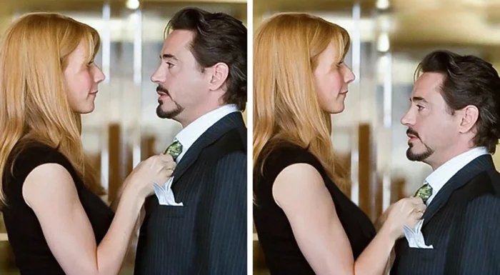 Роберт Дауни-младший никогда не мог похвастаться высоким ростом, хотя это совершенно не помешало сделать ему огромную карьеру в кино и стать одной из главных голливудских звезд. Но, как бы он ни был хорош, разницу в росте часто приходилось нивелировать. Так было во многих фильмах, и особенно в «Железном человеке», потому что Дауни-младший выступал в дуэте с Гвинет Пэлтроу, которая сама по себе достаточно высокая и при этом всем носит каблуки. Но в «Железном человеке» нельзя было показывать, что Роберт ниже Гвинет, потому что Тони Старк был ее защитником и занимал главенствующее положение в дуэте. Так что во многих сценах Пэлтроу попросту приходилось отказываться от каблуков, в то время как Дауни-младший носил туфли на высокой платформе, а в некоторых моментах актриса и вовсе ходила без обуви, а звук каблуков впоследствии добавляли на постпродакшне.