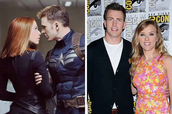 После того, как Стив Роджерс прошел свою трансформацию, он стал намного выше. Однако это был обычный рост Криса Эванса. Все дело в том, что слабую версию Стива сыграл другой актер с наложенным на него лицом Эванса. И несмотря на то, что Роджерс стал суперсолдатом, его решили не слишком возвышать над Наташей Романофф в «Первом мстителе: Другой войне», так что в некоторых сценах Скарлетт Йоханссон носила высокую обувь.