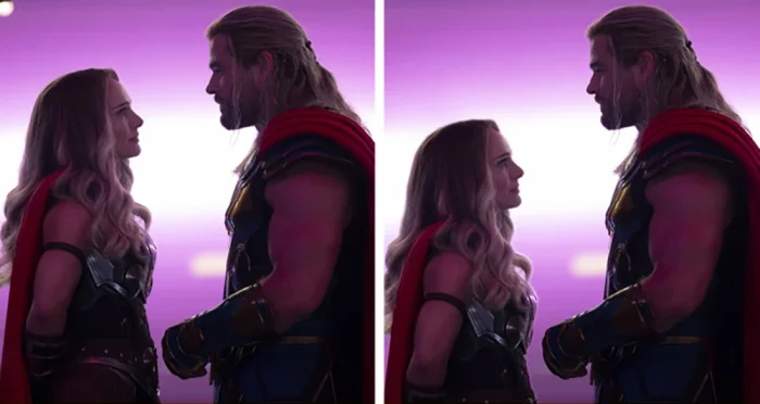 В первых двух частях «Тора» Джейн Фостер, сыгранная Натали Портман, является обычным человеком, и у нее с Тором соответствующая разница в росте, которую никто никогда не пытался скрывать. Однако в четвертой части Джейн получила силы и, похоже, вместе с ними выросла почти на голову и благодаря этому практически сравнялась с Тором. Чтобы добиться такого эффекта, Портман на протяжении всех совместных с Хемсвортом съемок находилась на специальной дорожке.