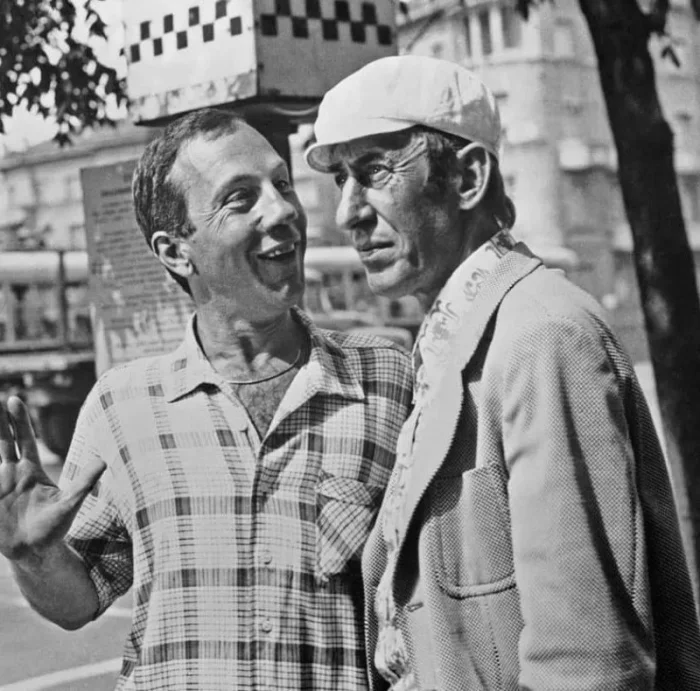 6. Савелий Крамаров и Владимир Басов на съемках комедии «Живите в радости», режиссёр Леонид Миллионщиков, 1978 год.