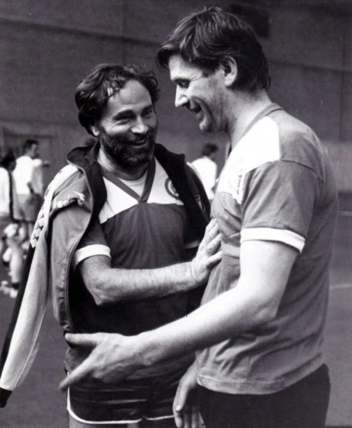 8. Итальянский актер Франко Неро и Александр Абдулов на футбольном матче чемпионата дипломатов и артистов, июнь 1992 год.