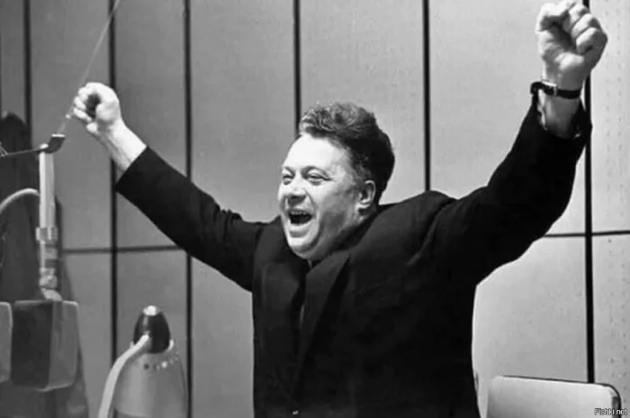 13. Эльдар Рязанов и оркестр Эдди Рознера на съемках фильма "Карнавальная ночь".