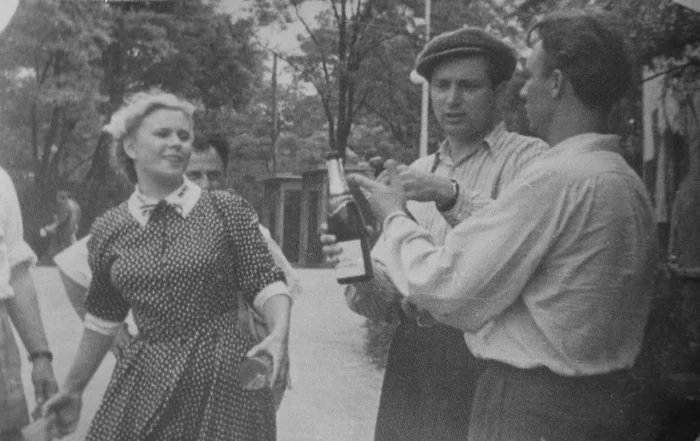 21. Геннадий Нилов, Евгений Жариков и Андрей Миронов на съемка комедии «Три плюс два», 1963 год.