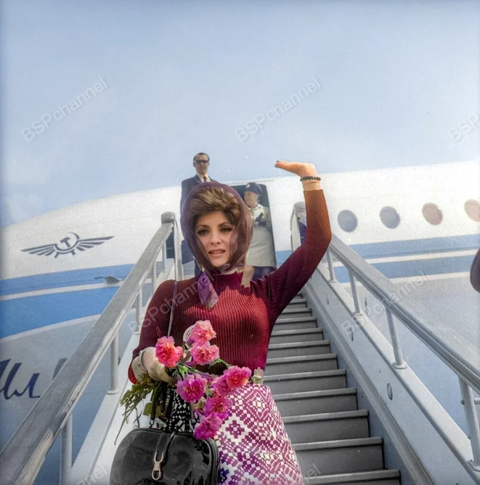 Итальянская актриса Джина Лоллобриджида прибыла в Москву, 1973 год.