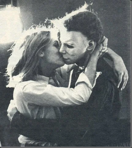 3) Джейми Ли Кёртис и Ник Касл в маске на съёмках хоррора "Хэллоуин" (1978). Из-за ограниченного бюджета в фильме снимались малоизвестные актёры. Гонорары были небольшими: Дональд Плезенс получил $20 000, Джейми Ли Кёртис — $8 000, а Ник Касл, игравший Майерса, зарабатывал всего $25 в день. Фильм сняли за 20 дней, так что его общий заработок составил $500.