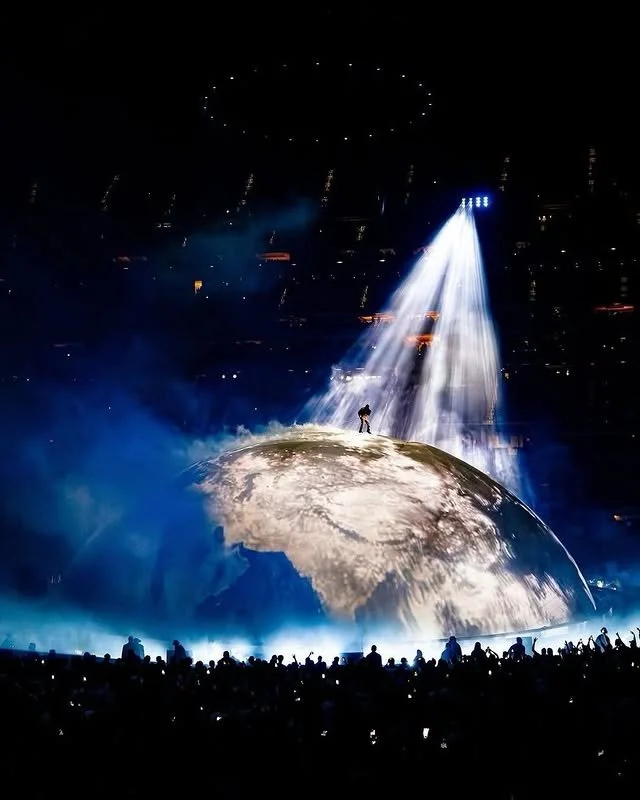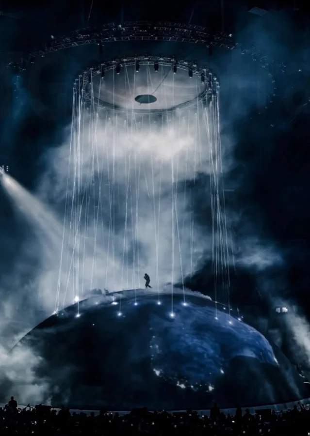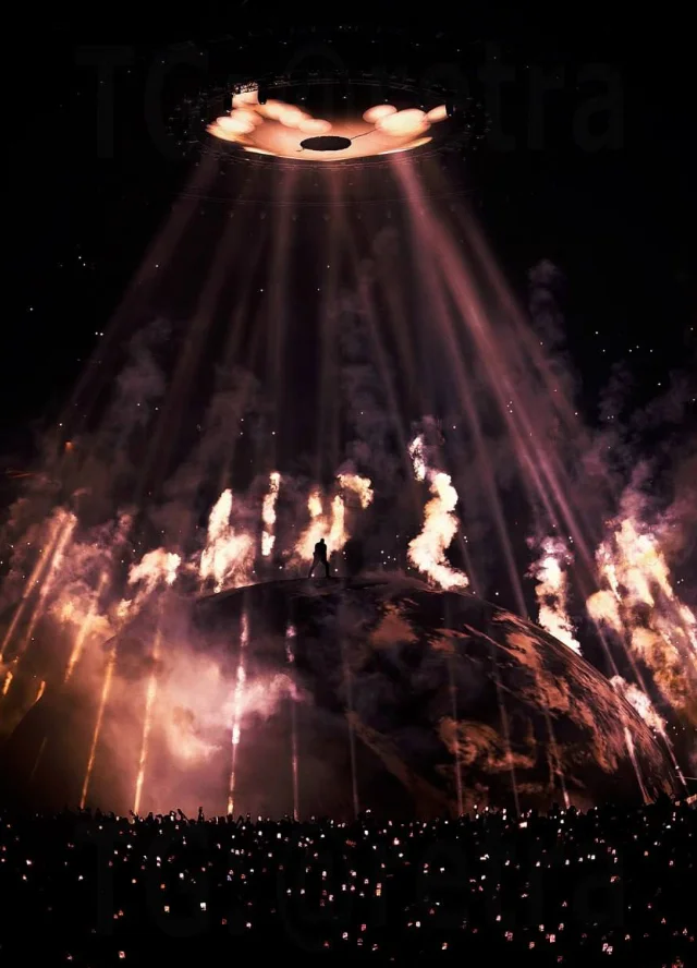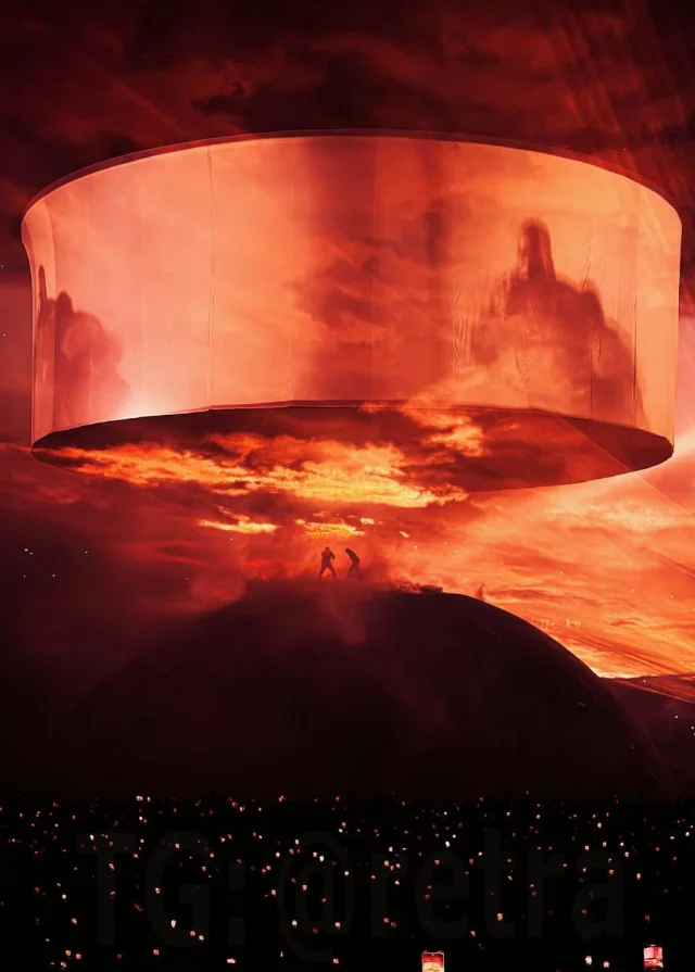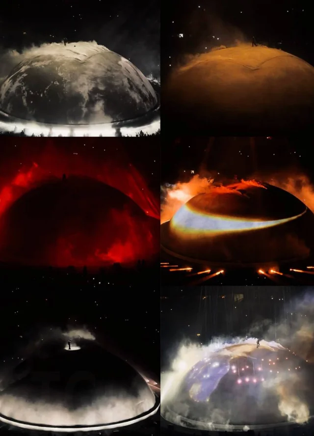 Дизайн сцены динамично эволюционировал в течение всего концерта: массивная сфера плавно трансформировалась — от вращающейся планеты до абстрактных, почти кинематографических образов, вдохновлённых культовым аниме «Акира». Особое внимание зрителей привлекли визуальные отсылки к знаменитому ядерному взрыву, открывающему фильм, — эффекты были настолько мощными, что многие сравнивали их с кинопроизводством высшего уровня.