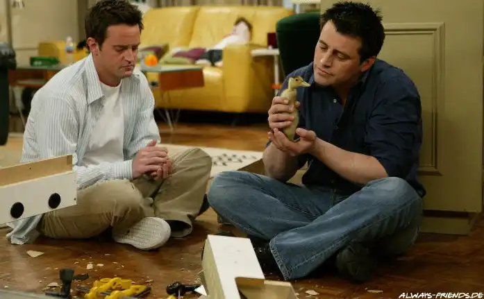 Сериал "Друзья" ("Friends") - телесериал, который за свою недолгую историю получили огромное количество наград ("Эмми", "Золотой глобус"), покорил миллионы зрительских сердец во всем мире. Шесть героев (Росс Геллер- Дэвид Швиммер, Чендлер Бинг - Мэттью Перри, Джоуи Триббиани - Мэтт ЛеБланк, Рейчел Грин - Дженнифер Энистон, Моника Геллер - Кортни Кокс и Фиби Буффе - Лиза Кудроу) - три очаровательные девушки, трое симпатичных молодых людей - закадычные друзья. Вокруг этой крепкой компании строится бесконечное количество разных историй: у друзей случаются романы, они ссорятся, мирятся. Но молодежь не может быть до конца серьезной, поэтому друзья не упускают случая пошутить, а чувство юмора у них отменное.