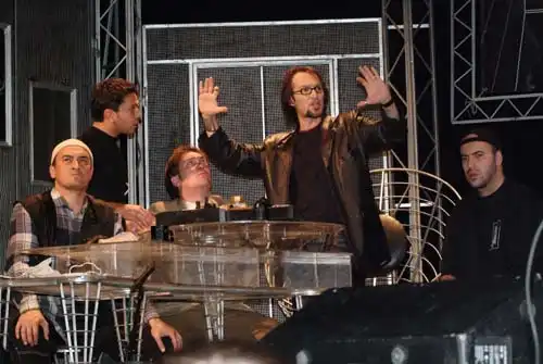 «День Радио» - на сегодняшний день наш главный хит, музыкальный спектакль, в котором на равных играют артисты, музыканты и деятели шоу-бизнеса. Впервые сыгранный на сцене ДК им. Зуева 24 марта 2001 г., он уже почти пять лет идет с неизменными аншлагами, сколько бы раз и на какой бы площадке он ни игрался. Собрав вокруг себя блестящих молодых артистов - Дмитрия Марьянова, Максима Виторгана, Ольгу Кузину, Нону Гришаеву, и, конечно, Алексея Кортнева, мы не просто поставили новый спектакль, а чуть ли не создали новый театральный жанр. Какой? А вот это вопрос.