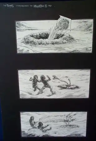 В основе сценария лежит рассказ Джона Кэмпбелла (John W. Campbell Jr.) "Кто идёт" ("Who Goes There?").