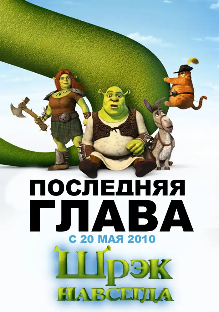 Сюжет: После того как зелёный великан спас принцессу, женился и обзавёлся тройняшками, Шрек стал чересчур домашним. Чтобы вернуть своё людоедское моджо, Шрек заключает договор с Румпельштильцхеном. Сделка с хитрым карликом идёт не так, как ожидалось, вследствие чего Шреку придётся узнать, какой была бы жизнь в королевстве Далеко-далеко, если бы его никогда не существовало.