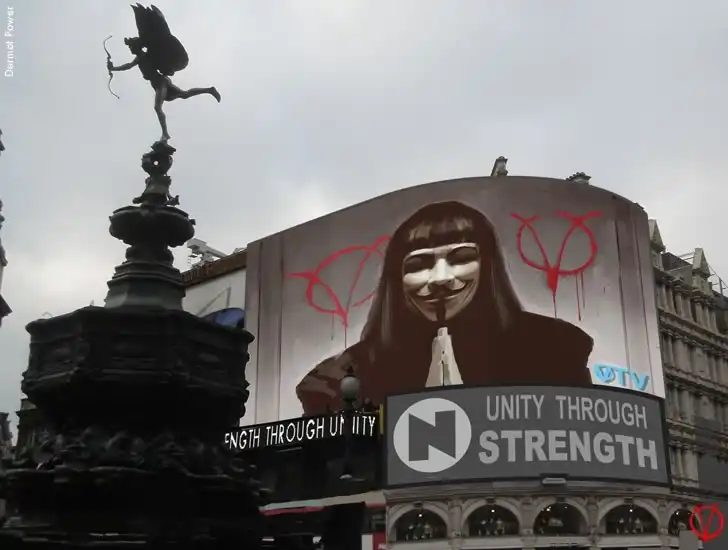 Вэ - идеальный гражданин: он борется за свободу и независимость народа, за демократию. У него очень сложная судьба: бывший заключенный концлагеря, над которым проводили эксперименты, обгоревший во время пожара, он вынужден прятаться, и при этом стремится все же разрушить тоталитарный режим, царящий в Великобритании примерно 2039 года.