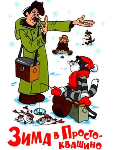 А на Новый год папа с Федором решили поехать в Простоквашино проведать Шарика с Матроскиным, которые уже начали раздел имущества… Там все и встретили Новый Год - даже мама на лыжах приехала!