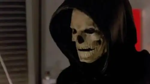 Человек-скелет (Человек скелет) - всадник в плаще и балахоне, вооруженный средневековым оружием терроризирует американских спецназовцев заблудившихся в лесу. Вместо лица у него ЧЕРЕП!