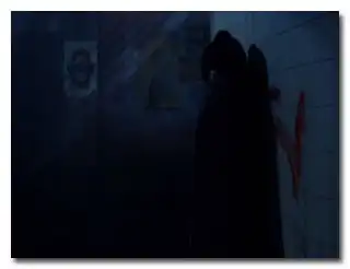 Затем Криди делает ровно пять выстрелов, и на стене остаётся кровавое пятно формы «V»: