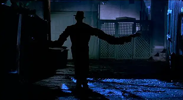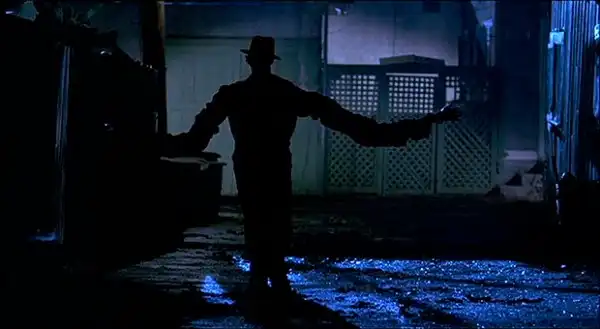 Один из первых эффектов в фильме – это сцена в аллее между домами, когда руки Фредди удлиняются. На самом деле, это была очень сложная сцена для реализации «живьем»: два человека из съемочной группы за кадром держали в руках удочки с леской, на концах которых висели бутафорские руки Фредди. Но это еще не все - чтобы длина рук увеличивалась, внутри них размещались резиновые емкости, в которые закачивали воздух.На самом деле вместо рук в рукава свитера были вставлены длинные удилища.