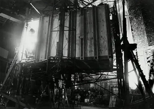 Но самой сложной декорацией, сделанной для фильма, была полностью реалистичная вращающаяся комната.В павильоне была построена огромная металлическая конструкция, внутри которой вращалась целая комната.