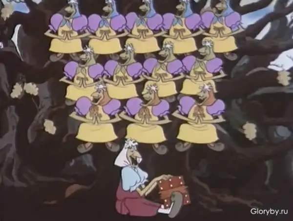 - Все три части мультфильма объединяет один второстепенный персонаж — старушка с выбивалкой для ковров.