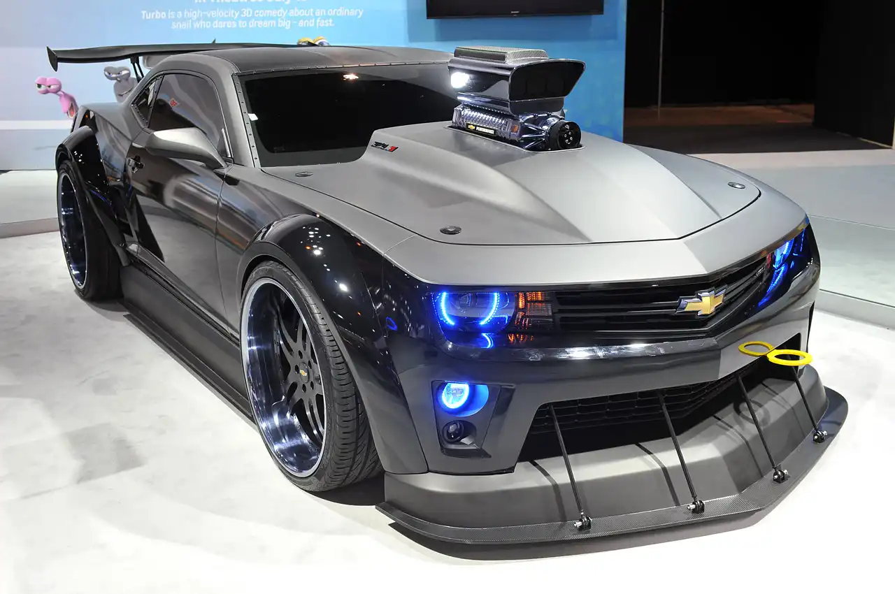 Рисованный аналог этого "монстра" станет главным действующим лицом в мультфильме Turbo, который студия DreamWorks обещает выпустить на экраны уже в июле этого года. За основу был взят Camaro ZL1. Капот установили от модификациии COPO, добавили агрессивный обвес, огромный сплиттер впереди, диффузор и антикрыло сзади. Все обклеили пленкой, имитирующей черный хром. Добавили светодиодов, впечатляющим по своим размерам, выпуском и, шоу кар готов шокировать публику.
