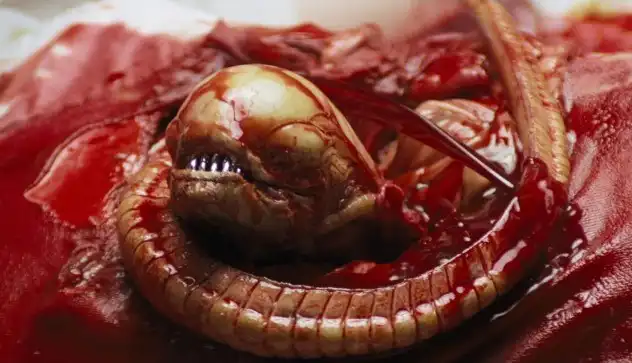 Жуткую сцену, где из разорвавшейся груди человека появляется отвратительное существо, помнят все. Но гораздо более жуткую историю о художнике Хансе Руди Гигере рассказал автор сценария Дан О’Баннон. По его словам, для создания головы ксеноморфа Гигер использовал настоящие человеческие черепа, купленные в Индии. Мало того: зубы на черепах, с которыми работал Гигер, были очень похожи на детские.