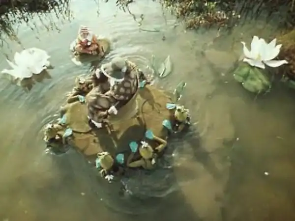 Девчонкам, изображавшим лягушек, приходилось еще хуже. Им регулярно приходилось бултыхаться в воду и в конце концов Тортила — Рина Зеленая заявила режиссеру: «Если еще раз будешь снимать дубль и заставишь детей лезть в холодную воду, сажусь в машину и уезжаю!»