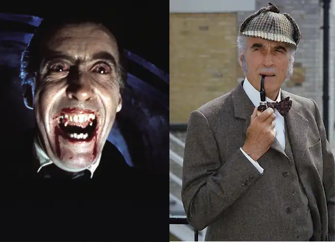 В начале я сделал ремарку, что Шерлок Холмс - это самый экранизируемый литературный персонаж-человек. Именно человек. Потому что есть персонаж, которого экранизировали чаще, но человеком его назвать трудно. Это Дракула, его образ оживили в 272 экранизациях. Главному кинозлодею Голливуда Кристоферу Ли довелось сыграть обоих: и Дракулу и Шерлока Холмса